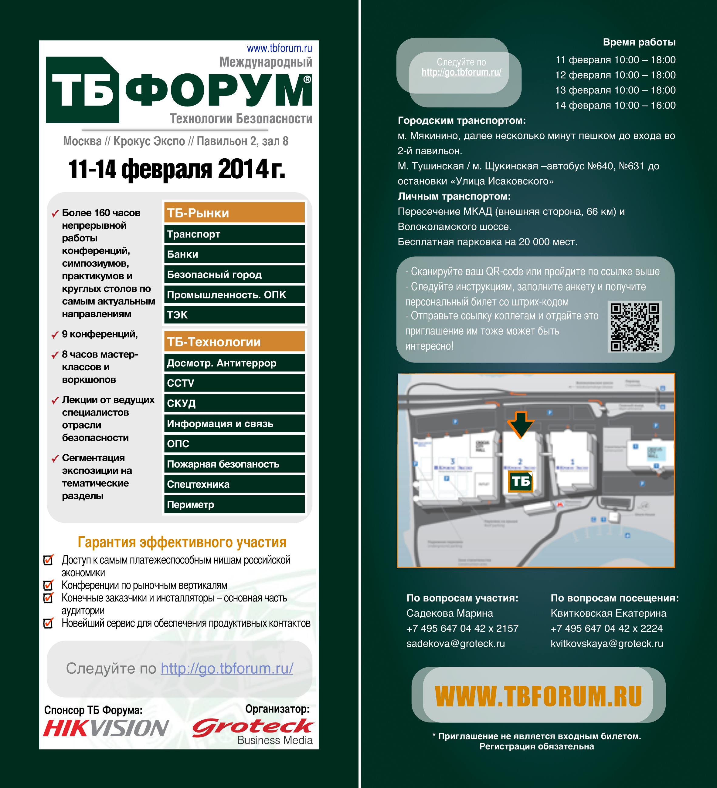 Для бесплатного посещения «ТБ ФОРУМ 2014» не забудьте пройти регистрацию на сайте организаторов выставки, либо распечатать официальное приглашение.